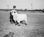 Billy Raiden, Mrs. Wilson's shepherd, shows one of the top rams in the Plano flock.
