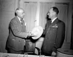 Amon G. Carter and Colonel William P. Fisher, series. Amon Carter is with Col. William Fisher both holding a hat.