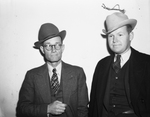 At Pecos Valley Livestock Meeting -- Standing left to right, Fern Tatom and County Agent John L. Mogford, both of Monahans, Texas. They are at the Pecos Valley Livestock Protective Association annual meeting. Both men are wearing suits and hats. Mr. Tatom is wearing eyeglasses. Published in The Fort Worth Star-Telegram morning edition, January 24, 1940.