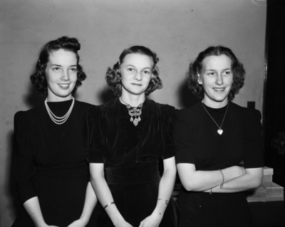 Gilby, Jane; Roberts, Alta Fay; Lee, Jean; Officers of Kappa Sigma Phi; Sororities; Girls; Dresses; Necklaces