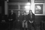 Royce Riddle and Billy Quattlebaum are members of the 4-H Club. They are pictured with Royce's dad, B. W. Riddle, at the left, and Assistant County agent, W. A. Ruhmann on the right. Royce and Billy spent a night and day in Fort Worth, Texas sightseeing and marketing. They sold livestock they had raised, cattle and lambs, at the Fort Worth Livestock Market livestock show and auction on Tuesday, taking home $689.25. Mr. Riddle is dressed in a three piece suit. Royce is wearing a dress shirt, necktie, coat, and trousers. Billy is dressed in a button-up shirt, necktie, leather jacket, trousers, and gloves. Mr. Ruhmann is wearing a collared shirt, necktie, sweater, trousers, and a coat. They are sitting on a bench.