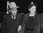 An auction for John B. Stribling & Son's hereford is being held at the Stribling Ranch. Some of the earlier arrivals to the ranch near Rotan, Texas are Mr. and Mrs. J. A. Garcia of Brownsville, Texas. They own a prominent ranch in South Texas. Mr. Garcia is dressed in a hat and a three piece suit. Mrs. Garcia is wearing a blouse, skirt and a fur coat. Published in the Fort Worth Star-Telegram morning edition, February 6, 1940.