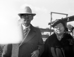 Image shows The fourth Annual Brown County Hereford Breeders sale is attracting many interested cattle buyers and ranchers. Mr. and Mrs. John McInnis are attending the sale. They are from the firm Cox & McInnis at Byrds, Texas. Mr. McInnis is wearing a hat, suit, tie, and coat. Mrs. McInnis is dressed in a hat, plaid blouse, and a coat. Published in the Fort Worth Star-Telegram morning edition, February 9, 1940.