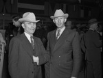 Southwestern Exposition and Fat Stock Show attendees (left to right) Walter L. Boothe, Sweetwater, Texas and Glenn Ross of Godleft, Texas, standing side by side both wearing suits and a hat, standing in midst of a large crowd.