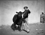 Southwestern Exposition and Fat Stock Show champion Aberdeen-Angus baby beef, shown with G. C. Whatley Junior of Groom, Texas. Whatley Junior is seen the animal which he fed and exhibited. Amon Carter bid in this fine young steer for the Star-Telegram at 25 cents in Friday's Sale of Champions.