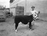 Here are more of the scenes that caught the eye of the Chuck Wagon Gossiper at the 1940 Houston Fat Stock Show and Houston Livestock Exposition, March 23-31, 1940. Here in the picture is Marvin McMillan Junior of Mason, who won first place with his group of three Hereford calves, shown with one of them.