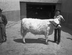 Here are more of the scenes that caught the eye of the Chuck Wagon Gossiper at the 1940 Houston Fat Stock Show and Houston Livestock Exposition, March 23-31, 1940. Here in the picture is Bob Simmons, DeLeon, with the snow white Shorthorn steer, that was second in the boys' class for Shorthorns.