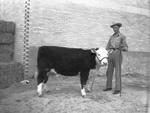 Here are more of the scenes that caught the eye of the Chuck Wagon Gossiper at the 1940 Houston Fat Stock Show and Houston Livestock Exposition, March 23-31, 1940. Here in the picture is Frank Brown, Future Farmers boy from Winters, with his calf. His calf was fed under the supervision of Wallace Martin.