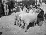 Sheep are increasingly important in the Texas ranch and farm picture just as lambs at Texas shows. Here are some of the lambs that were in the limelight of the recent South Plains Junior Fat Stock Show at Lubbock; March 25-27, 1940. Shown here in the picture are three prize winners in other classes: left to right, Roy Allen of McAdoo Future Farmers; Truman Harris of Spur Future Farmers, and G. G. Caldwell, Borden County 4-H Club boy.