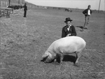 Despite present low prices of hogs, the Spur Future Farmers have faith animals as was proved by the good swine department in their recent show at the Spur FFA (Future Farmers of America) stock show; March 29-30, 1940. Shown here in the picture is Kenneth Dopson with his champion open Chester White gilt.