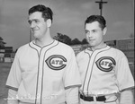 The Fort Worth Cats are wrapping up their Spring Training with a few positions left to fill. Left to right are Tom Callahan and August "Doc" Leipelt. Both men are looking for a spot on the pitching staff. Callahan is a twenty-three year old, right-handed pitcher. Leipelt is a twenty-six year old pitcher and outfielder. They are dressed in the Cats' home uniform.