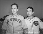 The Fort Worth Cats are wrapping up their Spring Training with a few positions left to fill. Left to right are Bob Price and Dan Duden. Price is a right handed outfielder. He is dressed in the Cats' road uniform. Duden is wearing the Cats' home uniform.