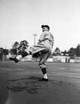Image of Ben Melton, rookie pitcher up from the East Texas League, looked "fair" in the Fort Worth Cats' firsst intrasquad game at the Marshall training camp. Melton, despite on a losing team, "Carl Knott", took out six batters before running into an issue in the thrd inning. Published in Fort Worth Star-Telegram morning edition March 10, 1940.
