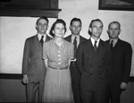 Spur Roundup and Rodeo Reception committee (left to right) Euclid Parrish Mary Putman, C. E. Fisher, William Starcher and C. H. White, seen standing in two rows side by side each other, with their hands beside or behind their backs.