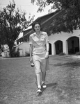 Southern Women's golf tournament. Marion Miley of Lexington Kentucky, seen here walking from the clubhouse to the first tee. She will defend her Southern golf championship in the tournament at River Crest. Published on May 17, 1940.