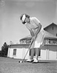 Southern Women's golf tournament. Betty Jameson, national champion, sinking a putt on the River Crest eleventh green. Published on May 19, 1940.