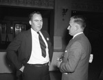 Southern Newspaper Publishers convention. On the left shows L. E. Manafield, representing the International Paper Company of Atlanta to Frank King, manager of the Dallas bureau of the Associated Press. Published on May 21, 1940.