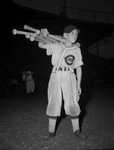 The Fort Worth Cats hired a new batboy, the eleven year old William Clarence Waldie, or "Whitey" as the team calls him. Whitey is substituting for the veteran batboy, Frankie Lala who has been ill. Whitey is wearing his oversized Cats' home uniform. He has a stack of baseball bats slung over his shoulder.