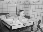 Spur Roundup and rodeo. Jimmie Don Fox, son of Mr. & Mrs. Charlie Fox, seen laying down on the changing table on his stomach.