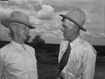 Spur Roundup and rodeo. B. T. Arthur, left of the Matador Ranch, and Ned Bowers of the S. M. S. Ranch, attended the Spur Roundup-Rodeo. Both men are seen standing in front of each other wearing hats.
