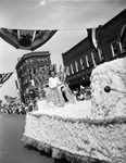 National Tomato Show and Festival at Jacksonville. The Flower girl, sitting on a parade float holding a hat.