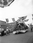 National Tomato Show and Festival at Jacksonville. Miss Kentucky, seen on a float covered with flowers, as it comes down the street.