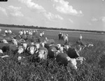 East Texas Hereford Association tour. Cattle at Horace High's place at High, 16 miles west of Paris. The cattle's are seen in a herd outside on the field.