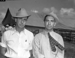 Texas Hereford Association Tour. Left to right, C. M. Largent Junior Granbury, and Fred Wilberly of Bryan, seen standing side by side each other.