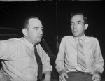 Texas Hereford Association Tour. Left to right, Grant Walker and Homer Polk, both of Clarksville, seen side by side resting on a car outside.