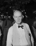 Texas Hereford Association Tour. Joe Cross, Troup, Hereford breeder, seen standing outside wearing a button down shirt, bow tie, and vest.