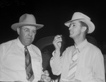 Texas Hereford Association Tour. Left to right, W. J. Jinkins and W. Largent, Merkel, seen standing side by side enjoying a meal.