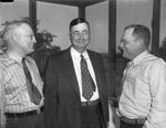 East Texas Hereford Association Tour. High School Austin ranch near Cedar Hill. Left to right, Claude J. Minter, Fort Worth, Texas; Wayne Milligan, Streetman; and Wade Winston, Snyder. All three men are seen standing side by side each other in a room.