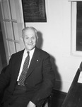 J. M. Davidson, secretary of the Weatherford Chamber of Commerce. He is sitting in a chair, wearing a pinstripe suit and necktie.