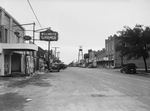 Main Street; Highway 121; Laundromats; Self-service laundries; Willhoite Garage; Gas stations; Automobile service stations; Roads; Highways; Automobiles; Coca-Cola; Advertisements; Drugstores