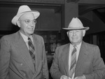 Among the men who made the National Range Tour through West Texas were, left to right, Doctor J. G. Porter, of the United States Bureau of Animal Industry with headquarters at Lubbock, Texas, and Sam Preston, who has a ranch about 20 miles southeast of Midland, Texas. Both men are wearing suits, neckties and cowboy hats. Doctor Porter is wearing eyeglasses.