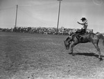 Rodeos; Slaton Rodeo; Horses; Broncos; Trick riding; Cowboy boots; Spectators; Downs, Johnnie