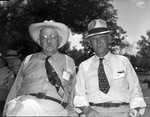 Among those attending the Seymour, Texas, cowboy reunion and rodeo were W. H. Francis, left, and W. F. Snody, of Benjamin, Texas. Francis went to Baylor County, Texas in 1887 and Snody settled in West Texas in 1889. Both men are wearing long-sleeve collared shirts, neckties, hats, eyeglasses and trousers.