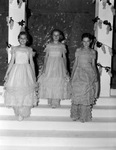 Taking part in the De Leon, Texas, Peach and Melon Festival were, left to right, Delores Tate, Jackie Row and Barbara Ballinger. The three young girls were members of the festival cast. They are wearing similar-looking, long dresses with ruffle details.