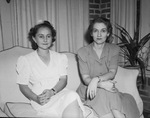 Left to right, Mrs. Andrew Stewart and Mrs. F. E. Crumley, seen sitting down side by side on a couch.
