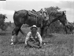 Pitchfork Ranch in Dickens and King counties. Harve Adams, ranch foreman and his favorite mount.