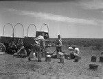 Pitchfork Ranch in Dickens and King counties. Shown outside, are three men filling and un-filling buckets.