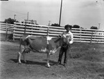 Cooke County Fair, at Gainesville. Prize winning Guernsey cow shown with Tom Hickman.