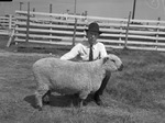 Cooke County Fair, Gainesville. Grand champion Shorpshire ram exhibited by B. N. Watts of Gainesville, shown with the animal.