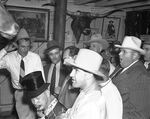 Bar scene showing crowd in bar at Shady Oak Farm during filming of the movie "The Westerner," Gary Cooper is at far left, Amon G. Carter is seen in the background.