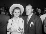 Bob Hope, left, with an unidentified woman during a dinner at Shady Oak Farm celebrating premiere of "The Westerner."