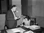 At Camp Brownwood are Fred S. Abney and Mrs. Martha Howard, both at a desk viewing some documents.