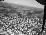 Aerial view of Brownwood, Texas. Shown is a sky view of the land and buildings.