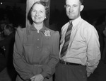 Feeders from the Corn Belt States are traveling a long distance to attend the annual Highland Hereford Feeder Cattle Show in Marfa, Texas. Pictured at the show are Mr. and Mrs. Frank Norrish. They have a farm with Texas-bred cattle in Morrison, Illinois. Mr. Norrish is serving as a judge in the show. He is wearing a dress shirt, necktie, and trousers. Mrs. Norrish is dressed in a button-up and belted dress with a handkerchief in the pocket. Published in the Fort Worth Star-Telegram morning edition, October 6, 1940.