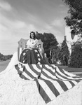 Feeders from the Corn Belt States and livestock admirers in general are traveling a long distance to attend the annual Highland Hereford Feeder Cattle Show in Marfa, Texas. Bobette MacKenzie is shown draped in an American flag, wearing a bonnet, dress, and shawl. She is riding on the first prize float she entered in the opening parade by the Marfa History Club. Miss MacKenzie is the daughter of Lieutenant Colonel Bertram M. Frankenberger, commander of Fort D. A. Russell. Published in the Fort Worth Star-Telegram morning edition, October 8, 1940.