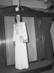 A selection of evening fashion is featured from different Fort Worth stores as there is preparation for varied beauty next month at the Assembly ball and Steeplechase ball. Miss Netta Cohen is modeling a pleated, long-sleeve gown that is banded with a metallic cloth, showing the vogue for long sleeves in evening gowns. She is carrying a clutch purse in her left hand. Published in the Fort Worth Star-Telegram morning edition October 27, 1940.